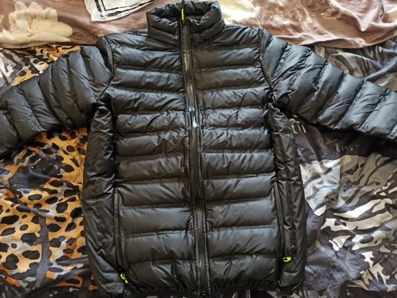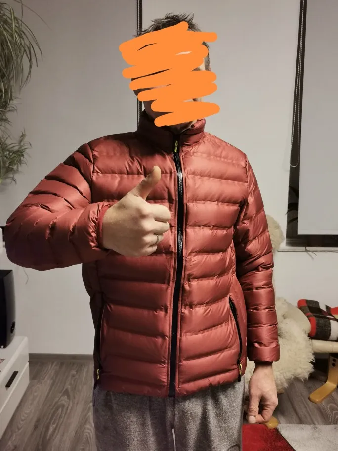 Куртка в целом хорошая. размер уточняли у продавца и подошёл отлично. выглядит стильно, лёгкая, удобная. Карманы на молнии. Но есть недостатки: в первый же день носки на спине внутри куртки стал вылазить синтепон. Внешний вид это не портит, как бы внутри, но на другой одежде останется кусками. И вверху впереди синтепона почти нет а куртке, только ткань. Пока не сильно холодно, муж носит с удовольствием, в принципе. Доставка быстрая, меньше месяца в Киев, трек отслеживался. Запаха не было.