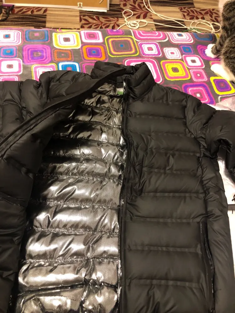 Куртка просто супер!!! Фабричный пошив. Очень легкая, но тёплая, со спины есть мембрана фольгированая для сохранения тепла. Я очень была удивлена получив такую качественную вещь. К покупке однозначно рекомендую. Нам на 50 р-р села с небольшим запасом , рукава при росте 187см нормальные.