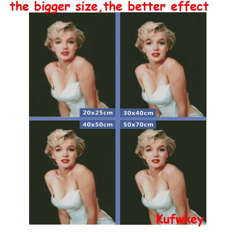 Чем больше размер, тем лучше эффект! Размер каждого алмаза: 2,5x2,5 мм. Если изображение сложное, то маленький размер будет не очень хорошим! Если вам нужны фотографии большого размера, пожалуйста, свяжитесь с нами!