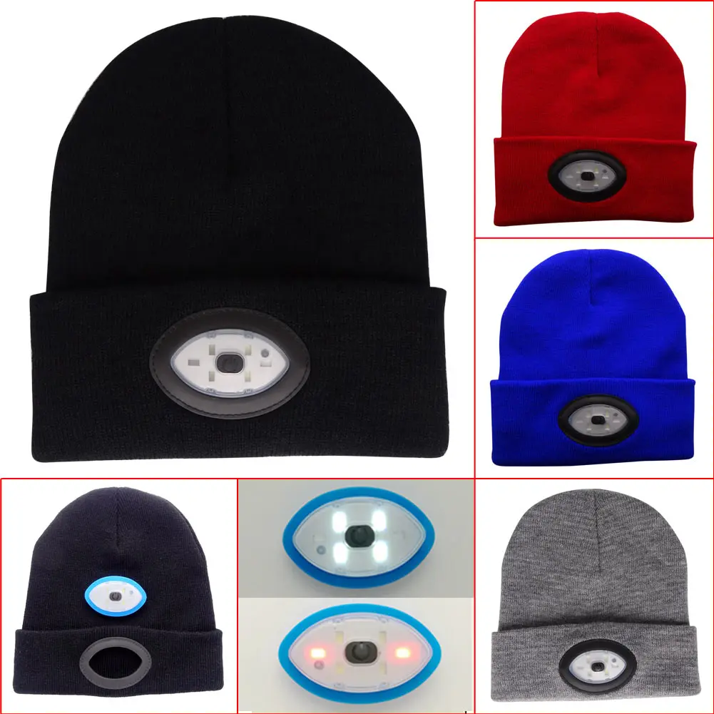 6 светодиодный USB Перезаряжаемый головной убор с фонариком, светодиодный вязаный теплый головной убор, аварийный фонарь для активного отдыха, кемпинга, скалолазания, рыбалки