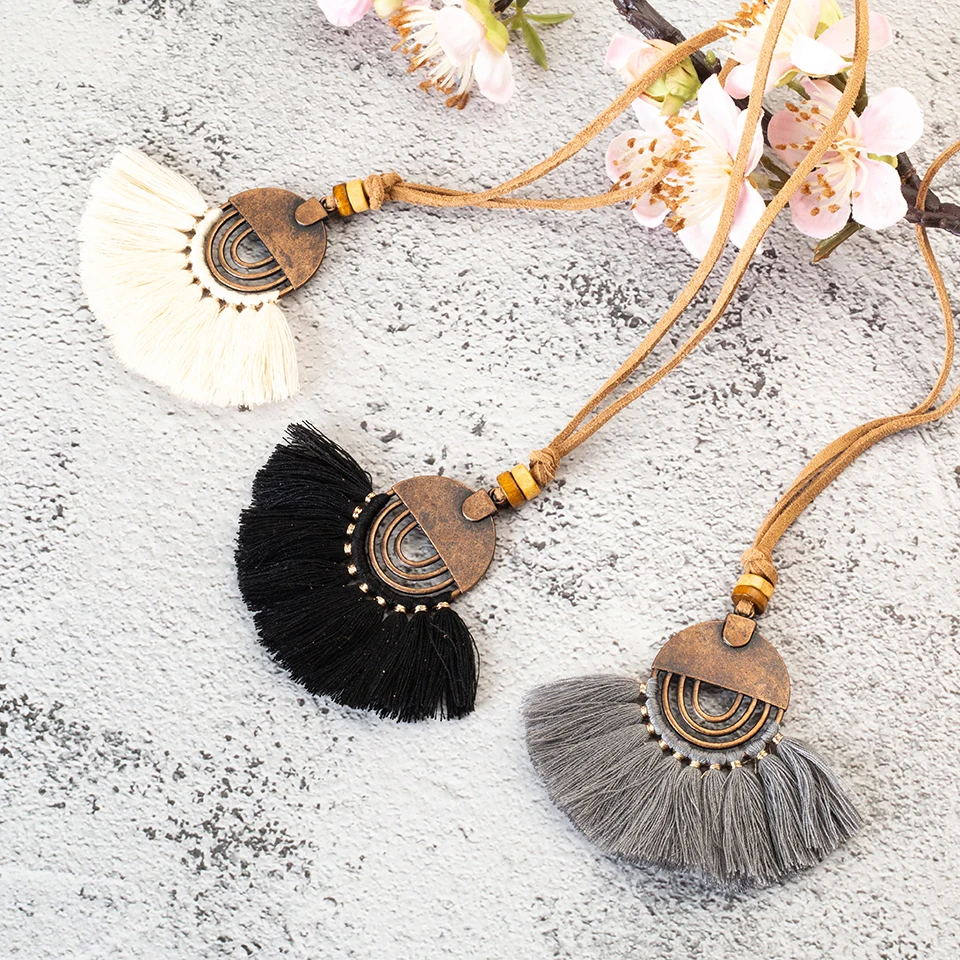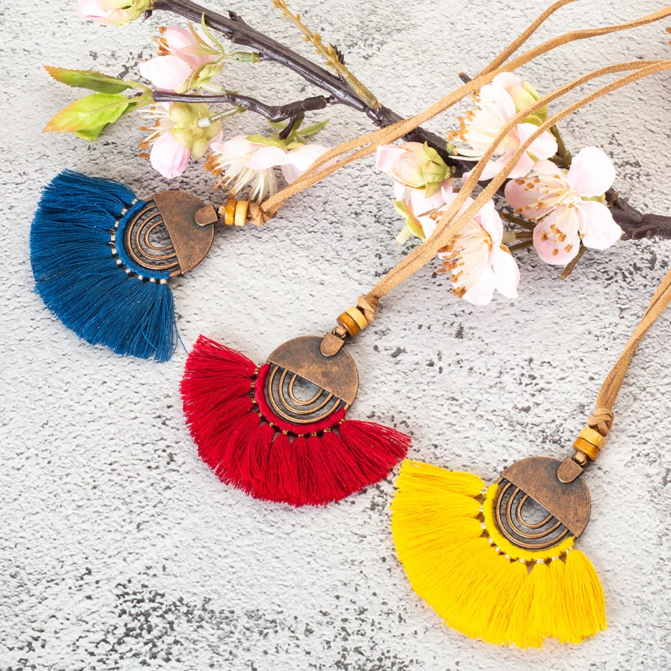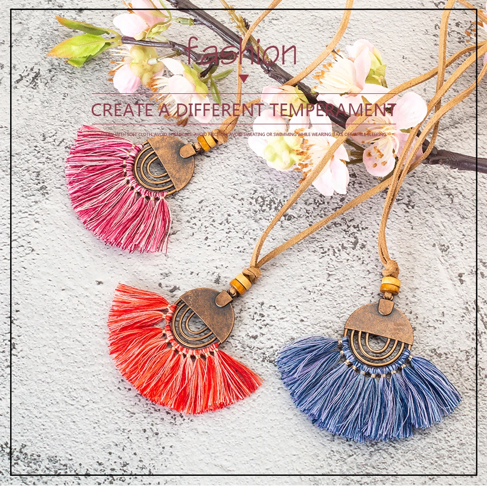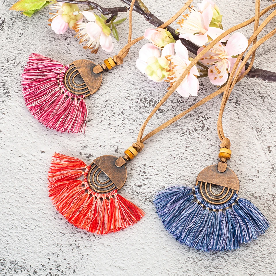 Винтажное длинное ожерелье из ткани с кисточками на свитере в богемном стиле Бохо этническое ожерелье с кулоном чокер для женщин ювелирные изделия аксессуары