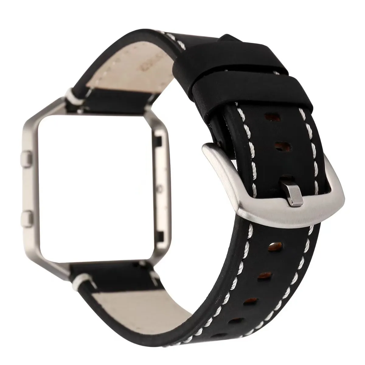 Ремешок для часов из натуральной воловьей кожи с металлической рамкой для Fitbit Blaze