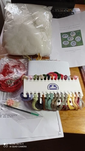 Отличный набор! В нем схемы на формате а4, инструкция, нитки на органайзере, канва, игла, стержень, крученая нить, бубенчики и холофайбер. Но я оформлять буду по своему. Это уже не первый мой набор у данного продавца. Набор в красивой папке на кнопке, так что для подарка тоже не будет стыдно. Доставка в Краснодар три недели. Трек отслеживается на всём пути