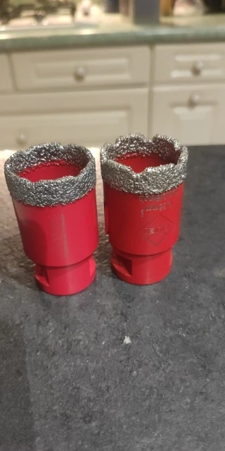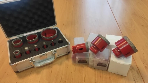 Хороший продукт Используйте для просверливания 2 отверстия 75 мм из натурального камня (синий камень) толщиной 3 см. Быстрая Доставка из Бельгии.