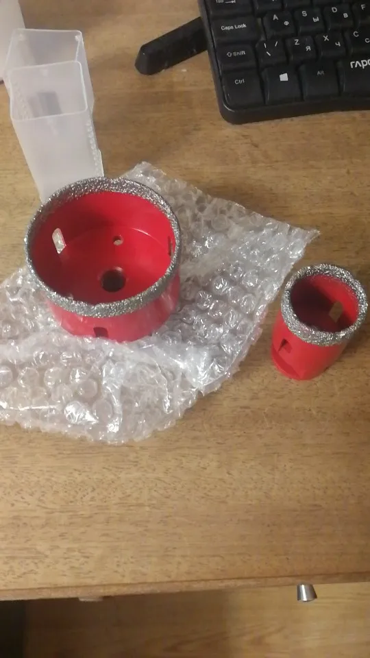 Прочитал отзывы, сделал заказ. Заказал размеры: 40,45,55,68 судя по обзорам на ютубе самые необходимые размеры для плиточных работ по керамограниту в санулах и ванных комнатах. При заказе написал продовцу попросил в падарок каронку номер 8. Продовец сдержал слово, выслал за что ему респект!!! В деле не пробывал.Отпишусь дополнительно.