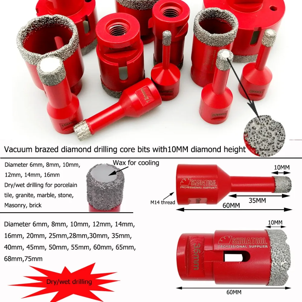 Алмазные буровые коронки SHDIATOOL, насадки для мрамора, каменной кладки, М14, керамическая плитка, корона, 1 шт. коронки по керамогранит керамграниту алмазные коронки плитка