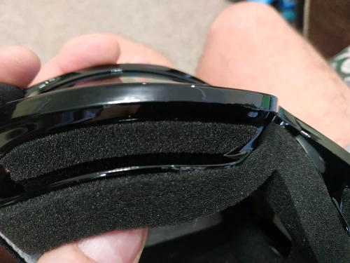 Конструкция очков не продумана. В верхней части в вентиляционных отверстиях наклеен поролон очень тонкий и наклеен так, что легко может оторваться. Этот поролон ника не защищен. Скорее всего, что бы быстрее очки вышли из строя. На фотографии видно, что на новой маске, он уже местами отклеен.