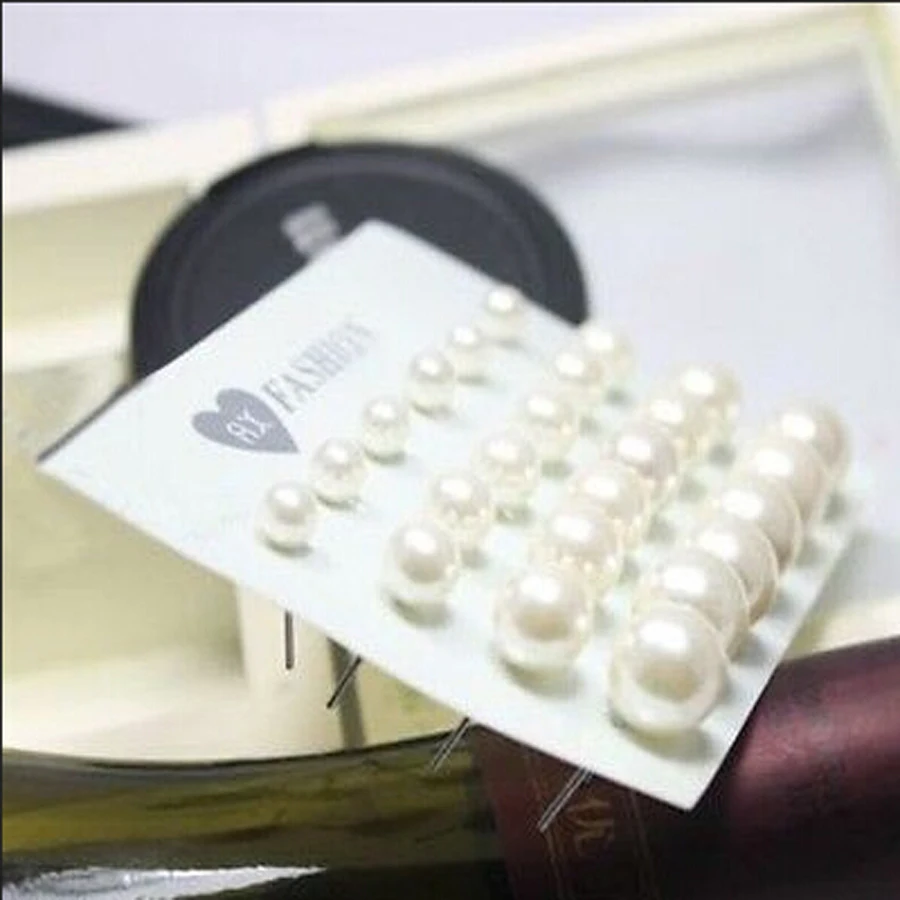 Женские серьги-гвоздики с имитацией жемчуга, 12 парткомпл.
