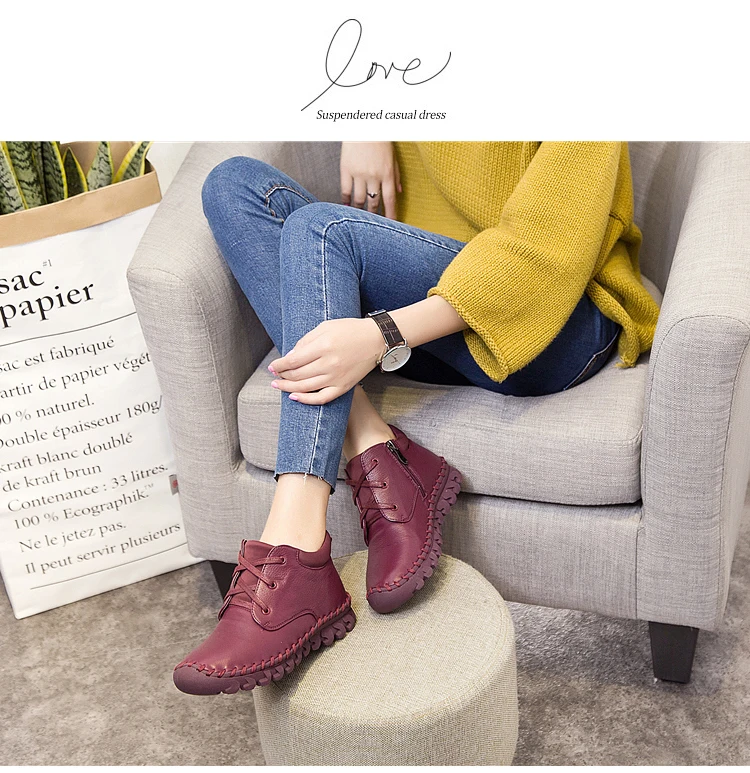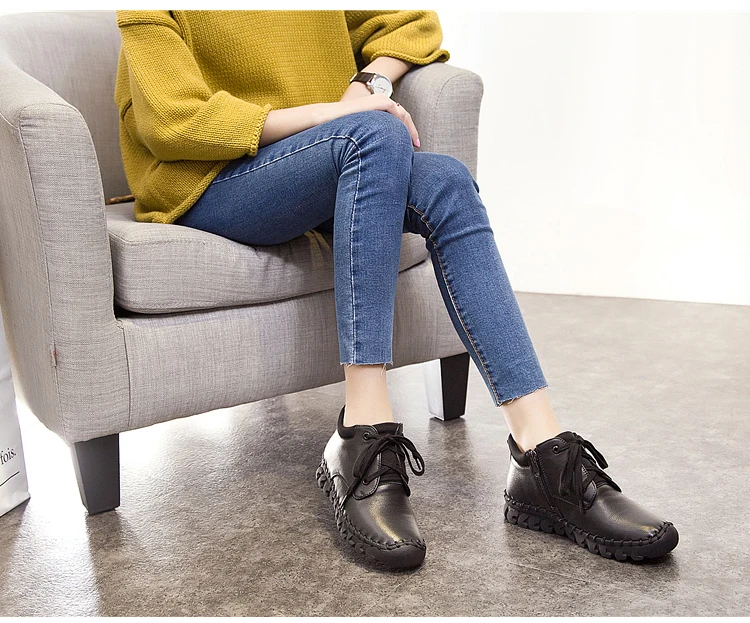 Женские ботильоны из натуральной кожи GKTINOO, бархатные мягкие ботинки ручной работы на плоской подошве, удобные повседневные ботинки, обувь для осени и зимы, 100%