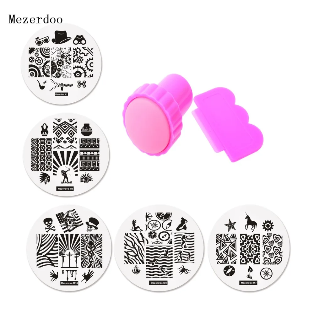 Единорог Русалка Стиль 10 Круглые штампованные пластины + 1 стемпер скребок Набор сделай сам дизайн ногтей шаблон пластина изображения для Nials украшения