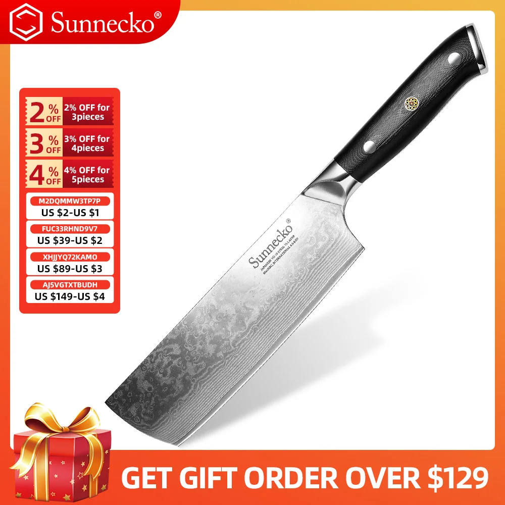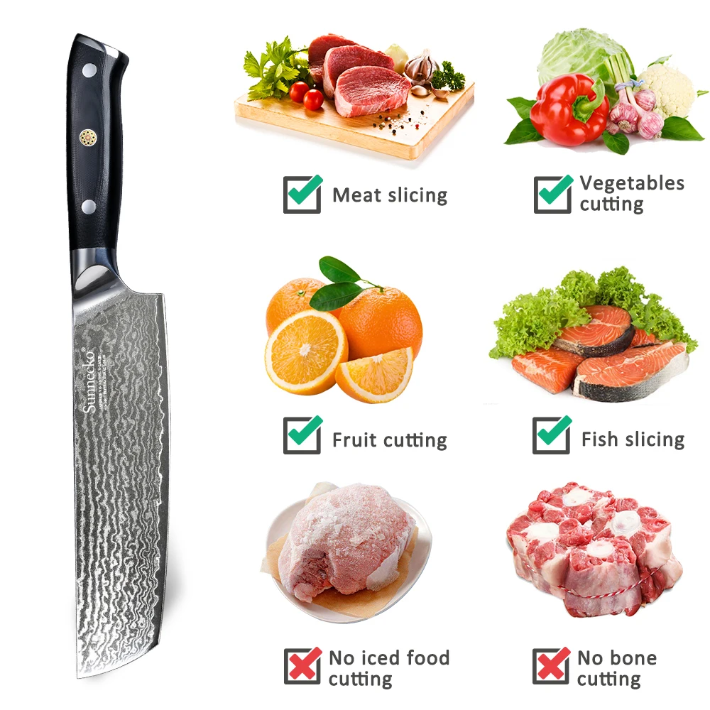 Профессиональный нож накири SUNNECKO VG10, топорик 7 дюймов, японские кухонные ножи из дамасской стали с лезвием из стали G10, ручка для резки мяса и овощей