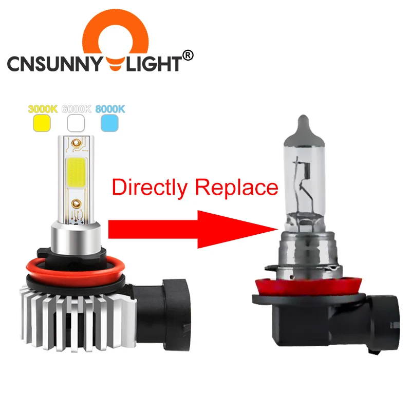 Светодиодные лампы CNSUNNYLIGHT H7 H4 H11 H1 H3 9005 HB3 9006 HB4 880, Автомобильные светодиодные лампы с COB матрицей, 36 Вт, 6000 лм, 8000K, 3000K, K, 12 светодиодный