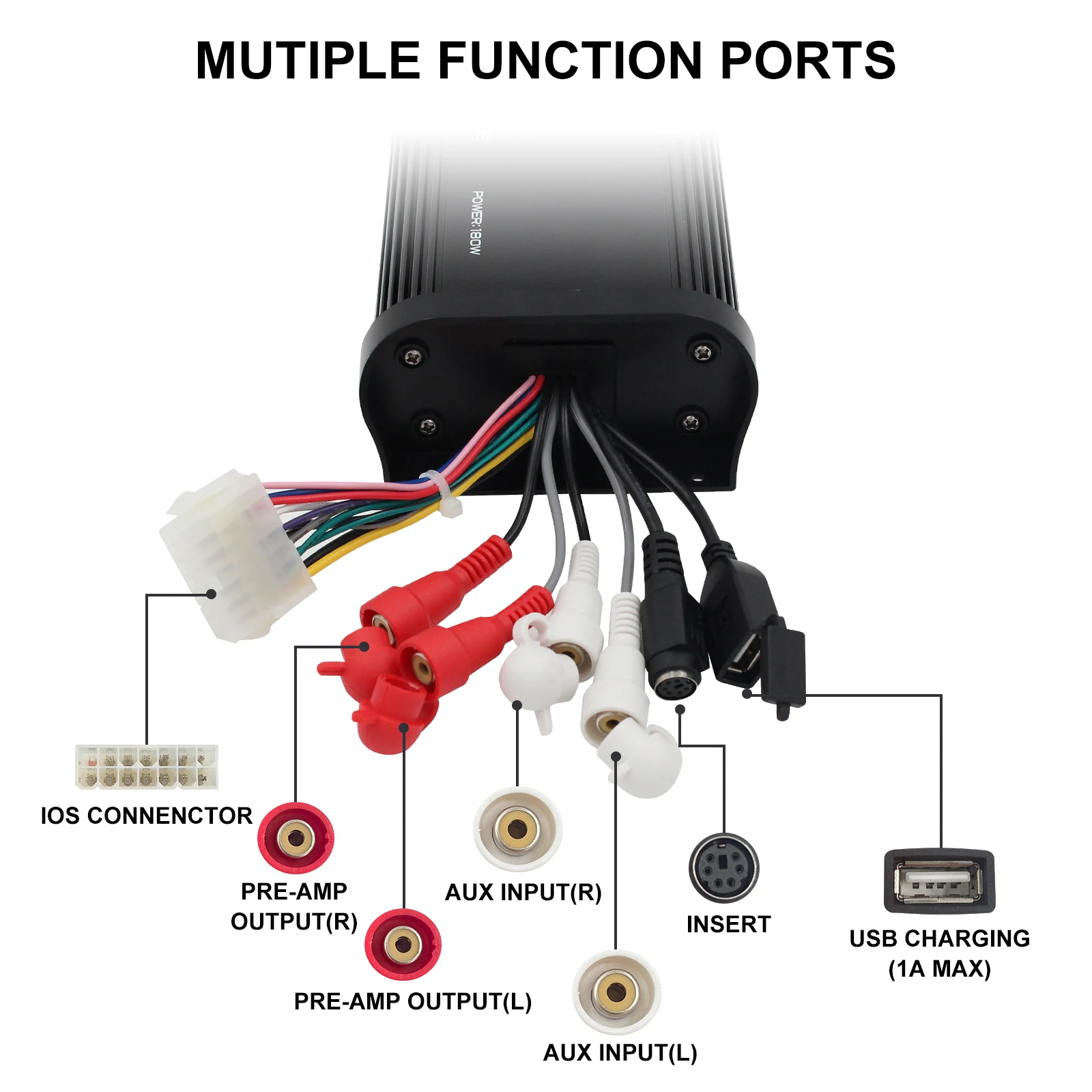 Высокий уровень моря: усилитель разработан с водонепроницаемым и защищенным от атмосферных воздействий корпусом. Полная морская оценка по IP-66. Устойчивая к атмосферным воздействиям функция выдерживает брызги тяжелой воды и другие наружные условия. Идеально подходит для лодок, ATV, UTV, RZR, снегоходов, Golfcart, тяжелых транспортных средств, мотоциклов, RV
