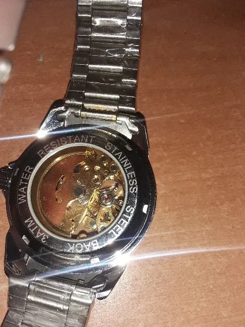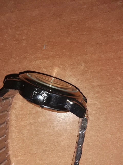С небольшим дефектом в нижней части циферблата, см. Фото. Кроме того, что касается черных часов той же коллекции, диаметр не 40 мм, а 38,5, что не соответствует часам для мужчин, а для женщин. Этот стиль часов будет намного лучше с диаметром 45 мм. Не забудьте собрать механизм перед сном, если часы удалены с запястья, потому что он останавливается после 6 часов, если с запястьем нет движения. Это просто модные часы, которые можно носить как браслет.