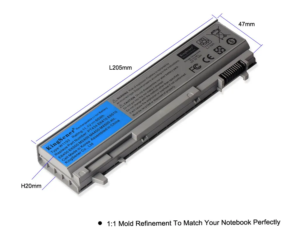 Аккумулятор KingSener для ноутбука DELL Latitude E6400 E6500 E6410 E6510 M2400 M4400 M6400 W1193 PT434 KY265 GU715 C719R RG049 U844G