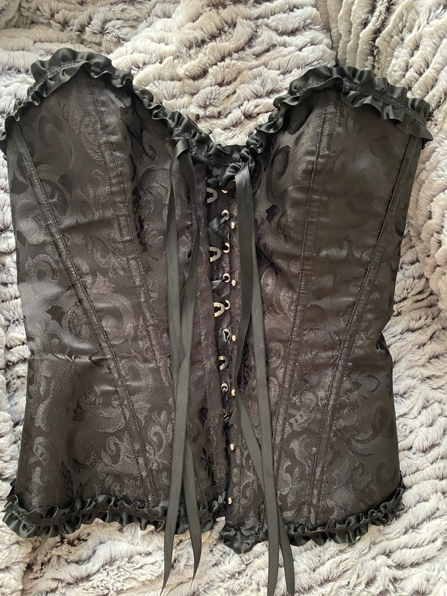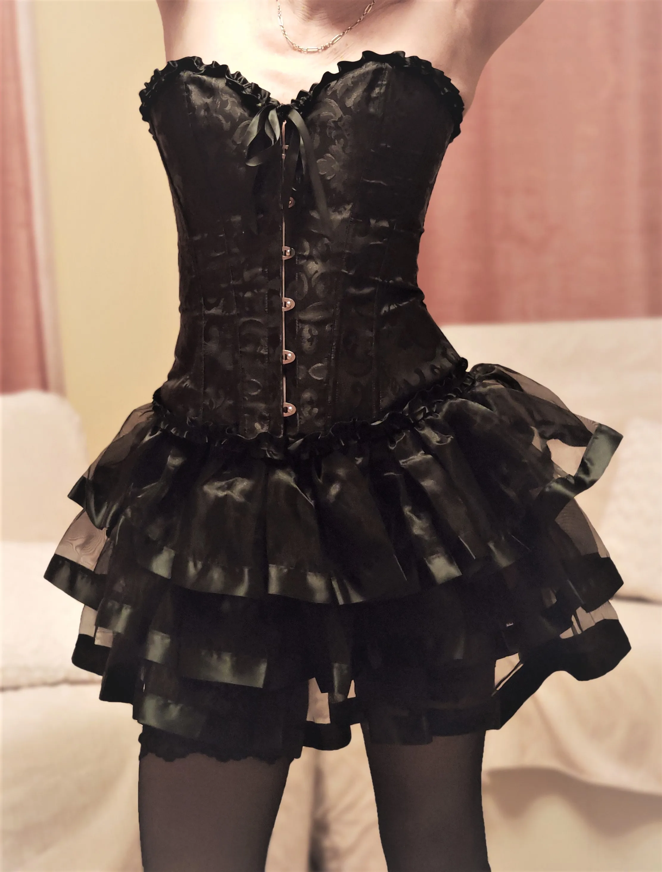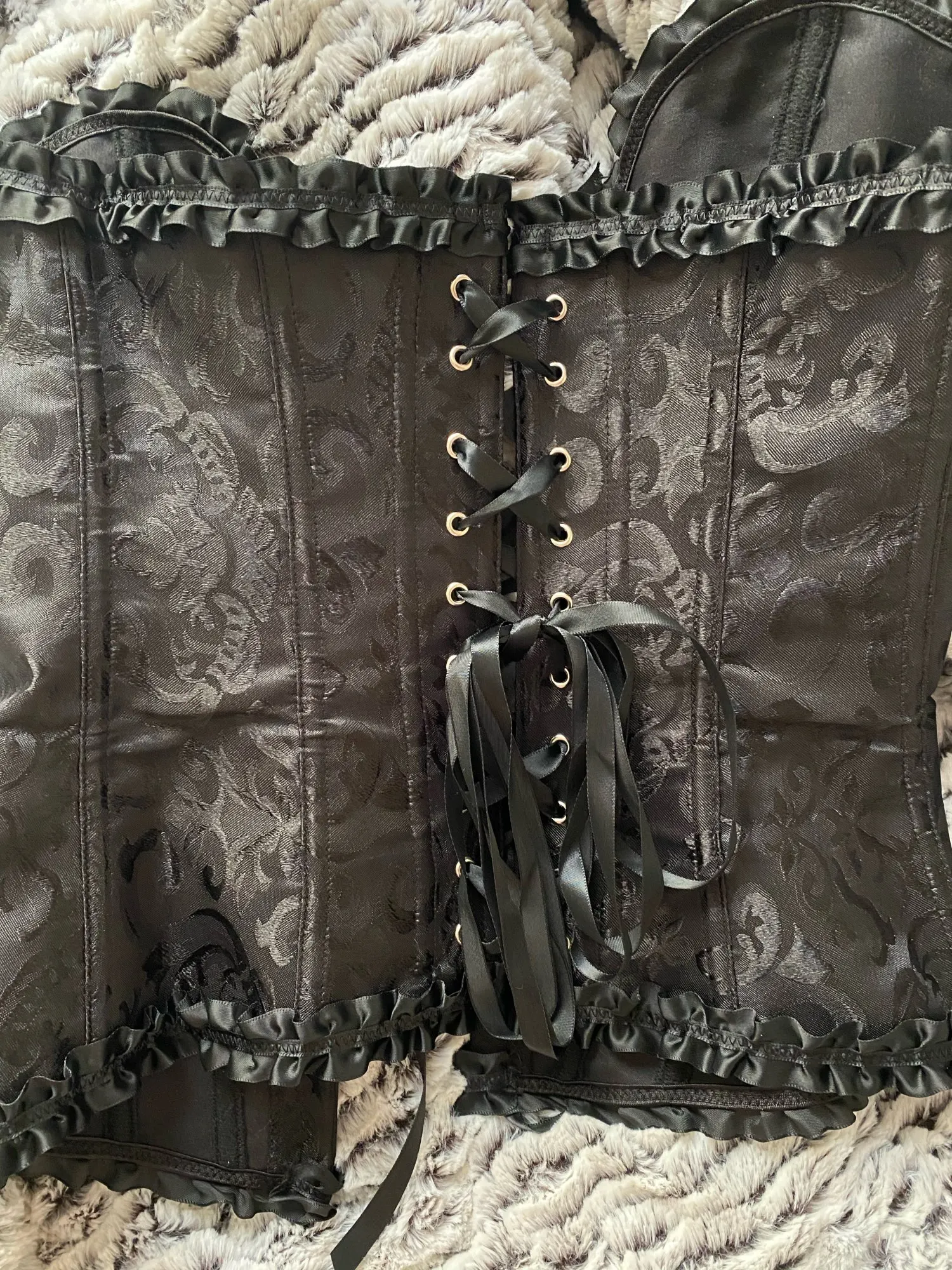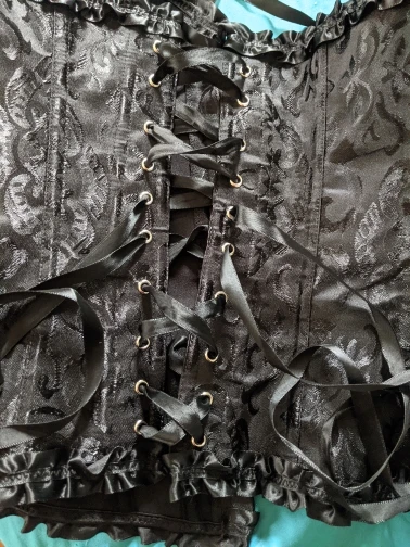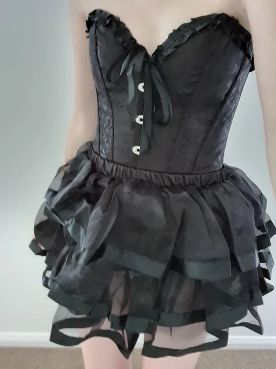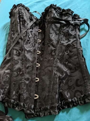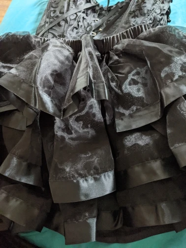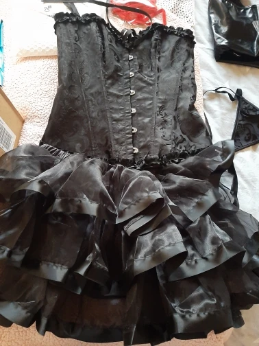 Это довольно мило! Хотя id на 2 размера больше, если у вас есть tig ol bitties, как я. Это довольно старомодный корсет, поэтому было трудно для моего мозга гороха, но мне это нравится! Юбка немного просвечивает. Кроме того, его прохладно!