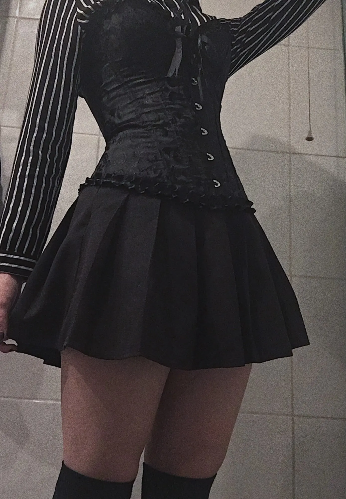 Это точно так же, как на картинке! Я не понимаю, что это комплект из двух предметов, но это означает, что вы можете сочетать каждый товар с другой одеждой, которая очень классная! Я разместил фотографии в своем Instagram @ kuromii. Кукла <33, пришла очень быстро, юбка довольно короткая и немного большая на талии для маленького размера, корсеты также немного свободные на талии, но все равно выглядят отлично!