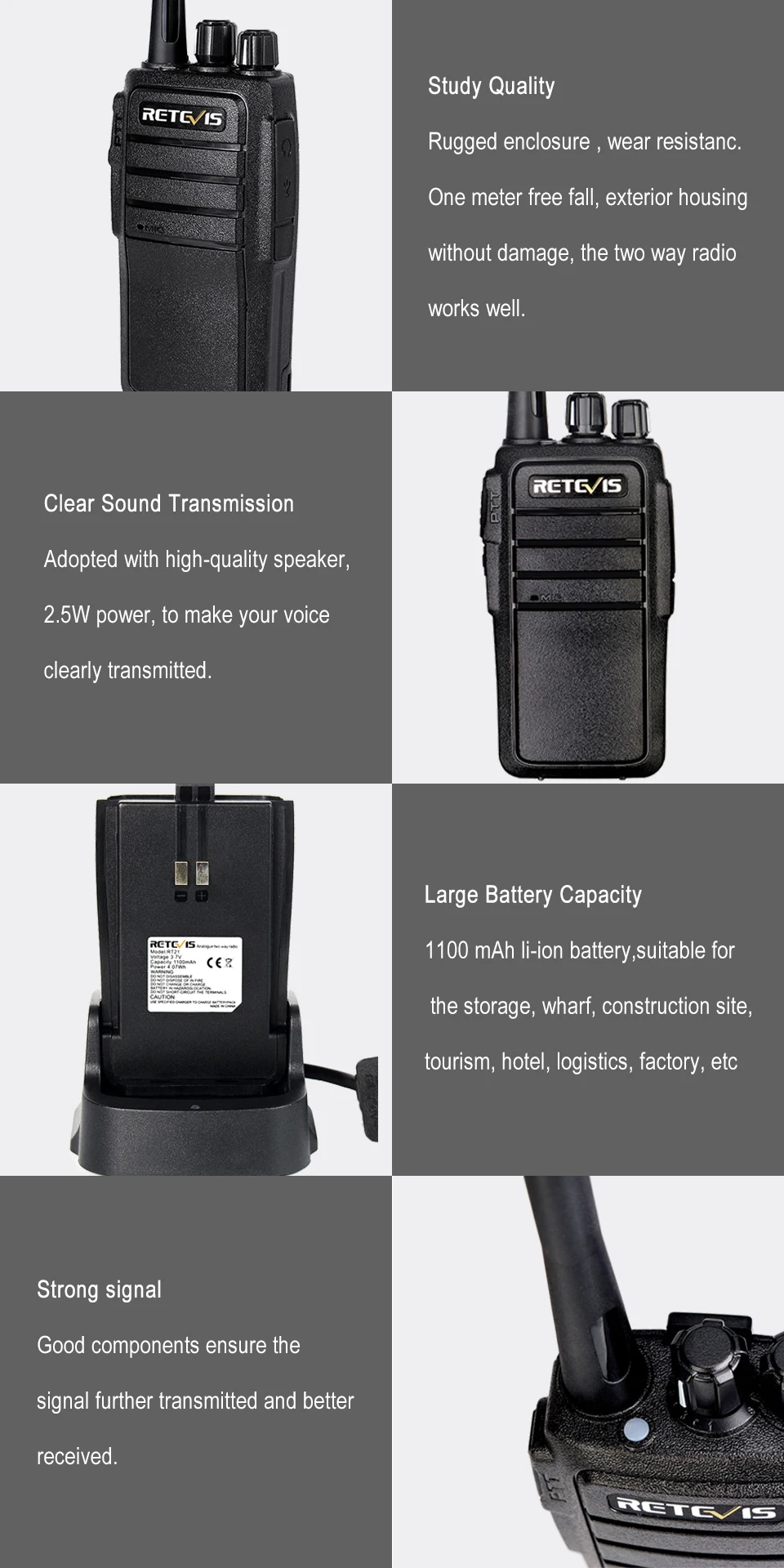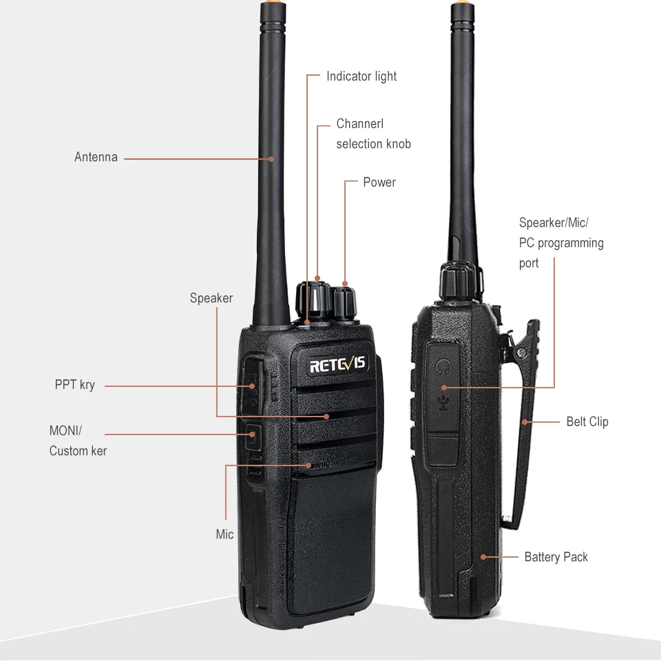 Это новейший профессиональный аналоговый двухсторонний радиоприемник, стильный внешний вид, удобные ощущения, прочный корпус, износостойкость, не легко Царапаться. Один метр свободного падения, двухстороннее радио корпус без повреждений, двухстороннее радио может продолжать работать (нижняя часть домофона вниз, не может повернуть ручку вниз). Двусторонняя радиопередача мощность фактический тест 2,5 Вт, фактическая емкость батареи маркирована. Хорошее качество вызова, Поддержка программирования ПК, стабильное и надежное качество, использование дольше. Это двухстороннее радио подходит для хранения, пристани, строительной площадки, туризма, отеля, логистики, фабрики и т. Д.