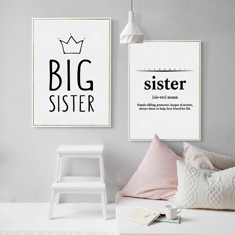 Большая сестра картина с цитатой печатает настенные фотографии для украшения комнаты девушки