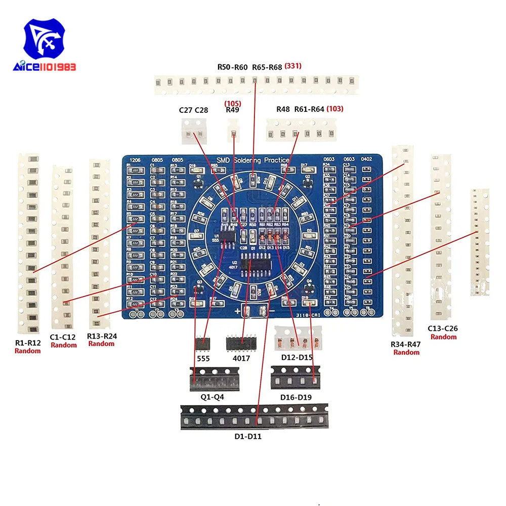 DIY Kit CD4017 вращасветодиодный ная паяльная плата SMD NE555 для Arduino Fanny Skill Starter, тренировочный костюм