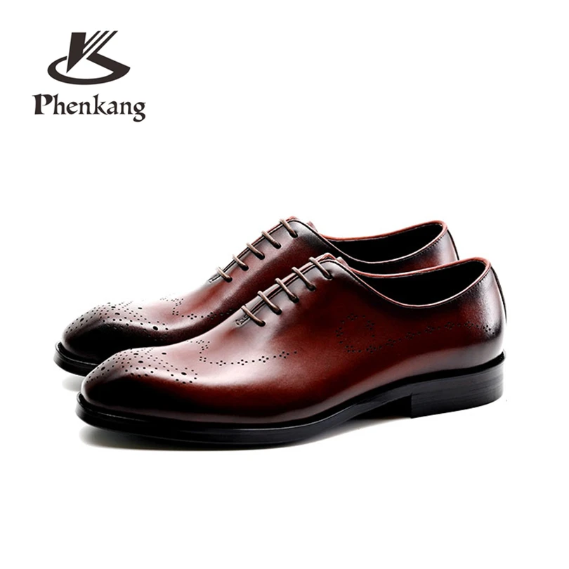 Мужские кожаные туфли, деловой костюм, мужские брендовые черные свадебные мужские туфли из натуральной кожи на шнуровке Phenkang 2020