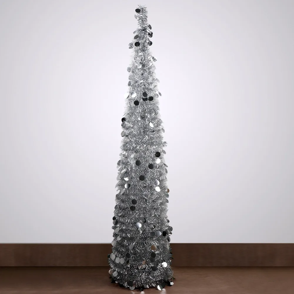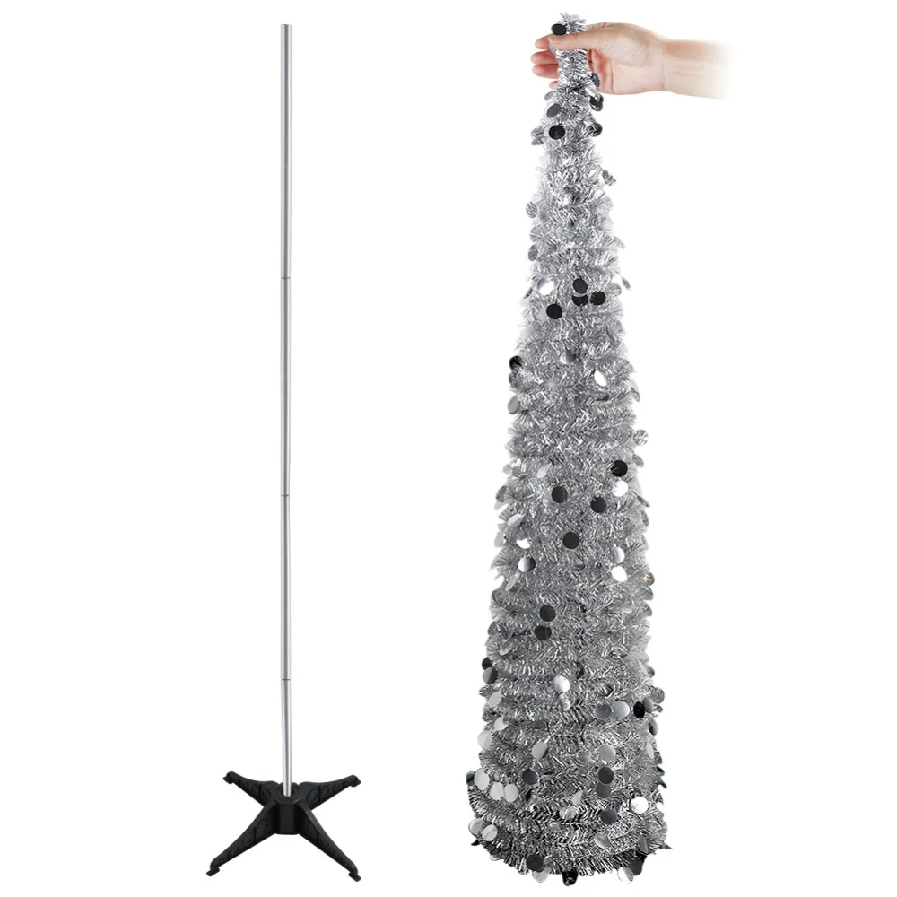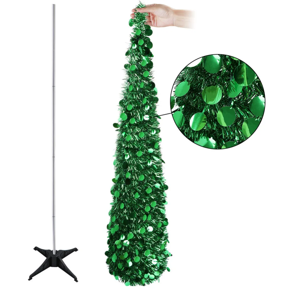 OurWarm 5ft мишура всплывающая елка складная искусственная рождественская елка новогодняя елка украшения серебристо-зеленая