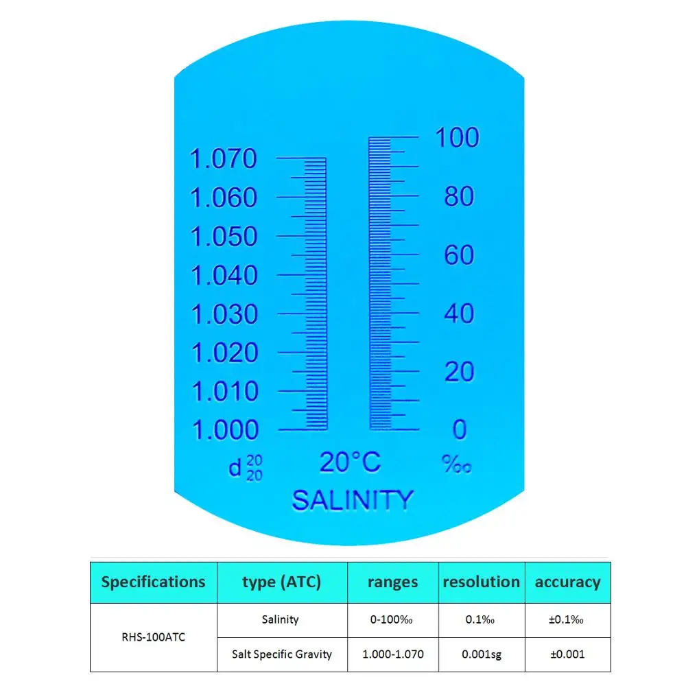 Рефрактометр Соленость 0-100ppt соль 1,000-1.070sg для аквариума соленая вода соленоватая морская atc Соленость рефрактометр Aqurium