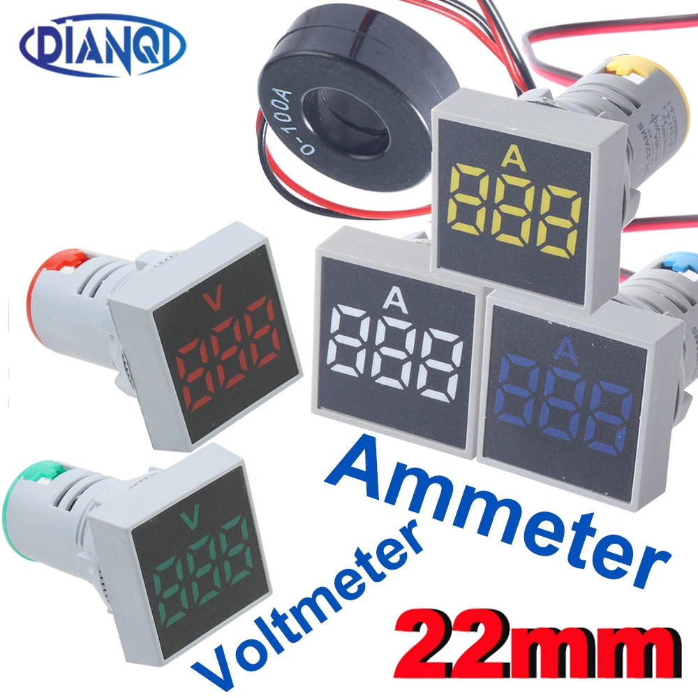 1 шт., квадратный амперметр с цифровым дисплеем, 22 мм, 0-450 А