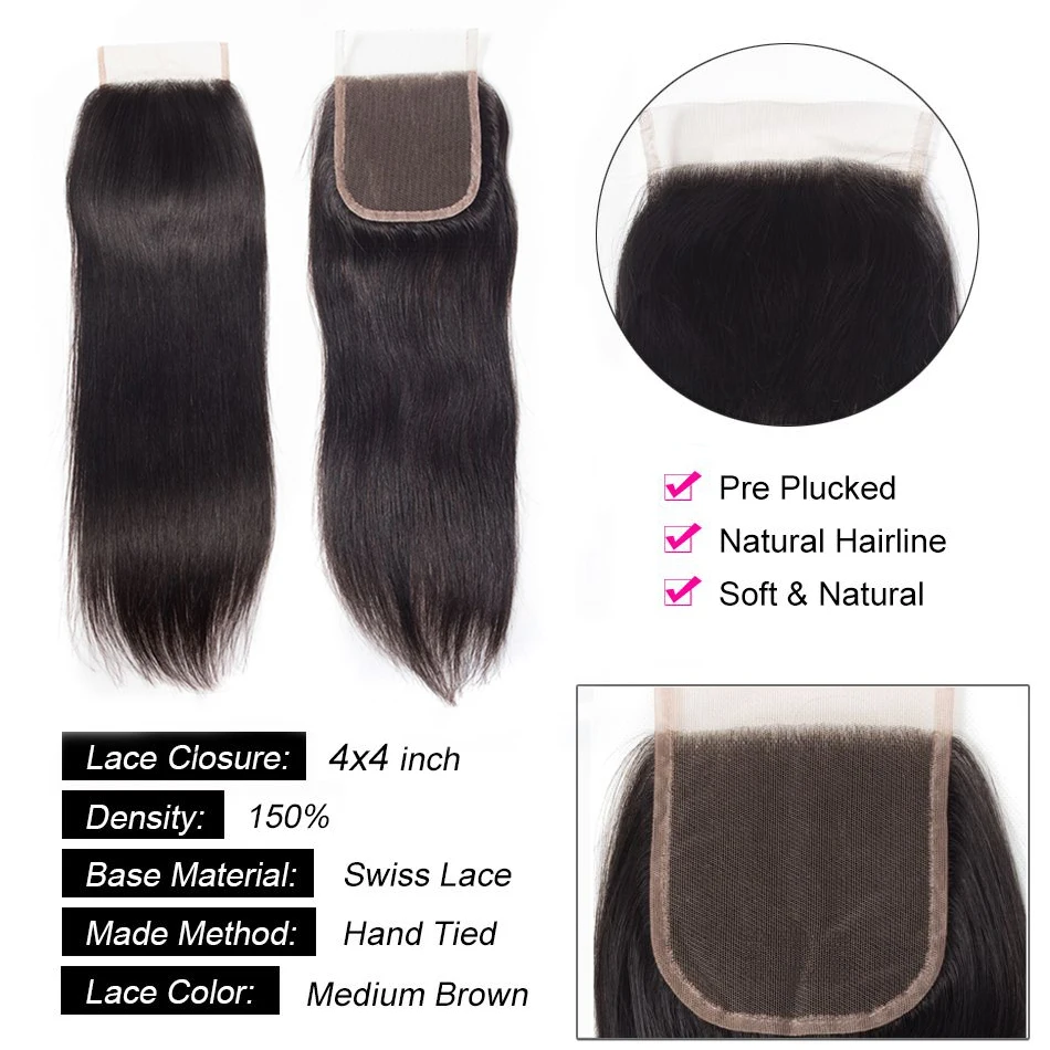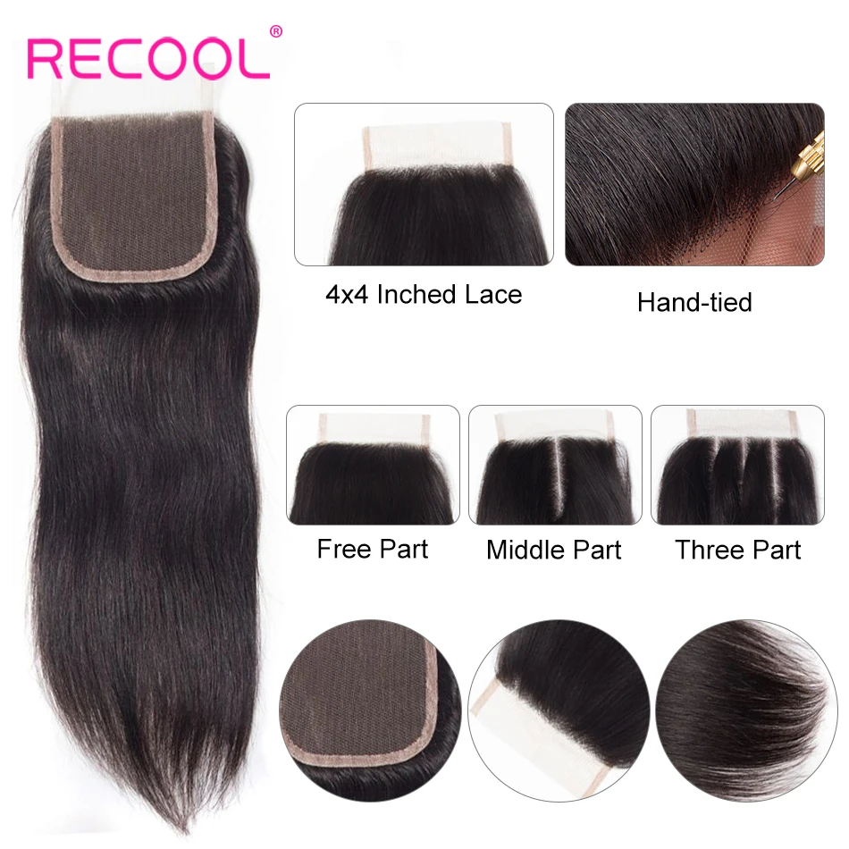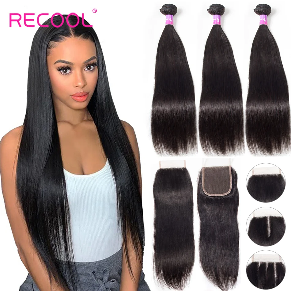Recool прямые пучки волос с закрытием бразильские волосы плетение 3 пучка с закрытием 8-30 дюймов человеческие волосы пучки с закрытием