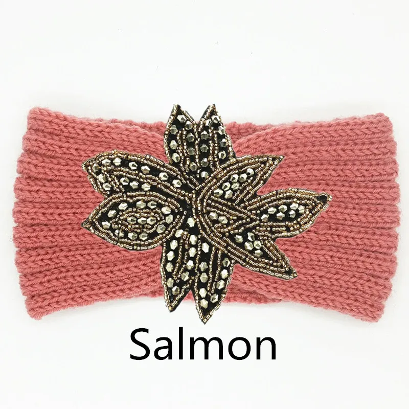 Повязка на голову Стразы с бусинами для женщин зимние аксессуары с цветами Теплая повязка на голову бандана для волос в стиле бохо для девочек повязка на голову тюрбан