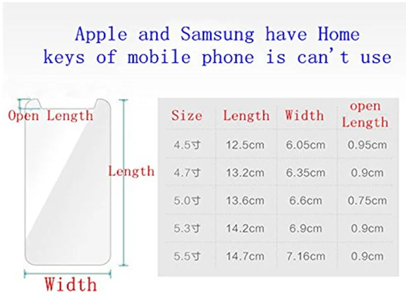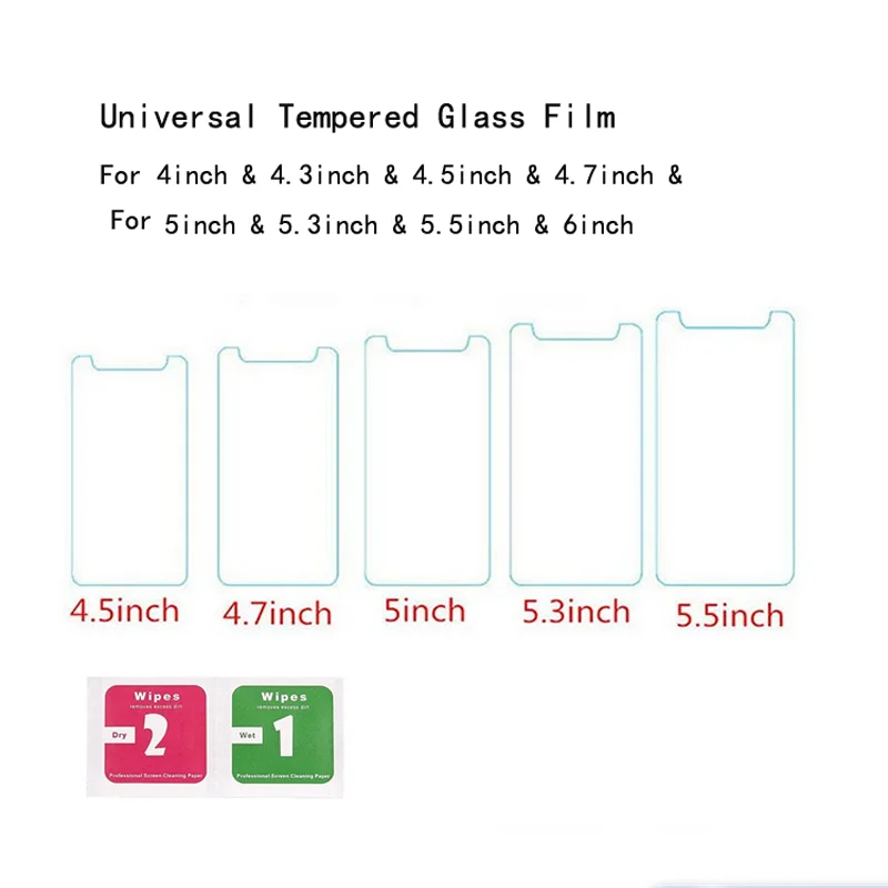 2 шт Универсальный 4 "4,3" 4,5 "4,7" 5 "5,3" 5,5 "5,7" Закаленное стекло протектор экрана