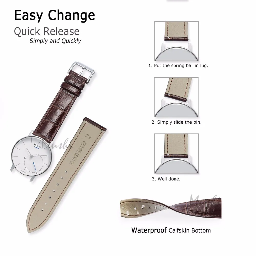 Ремешок для часов из натуральной телячьей кожи, быстросъемный ремешок для часов 18, 20, 22 мм, браслет для часов с застежкой-бабочкой, серебристый