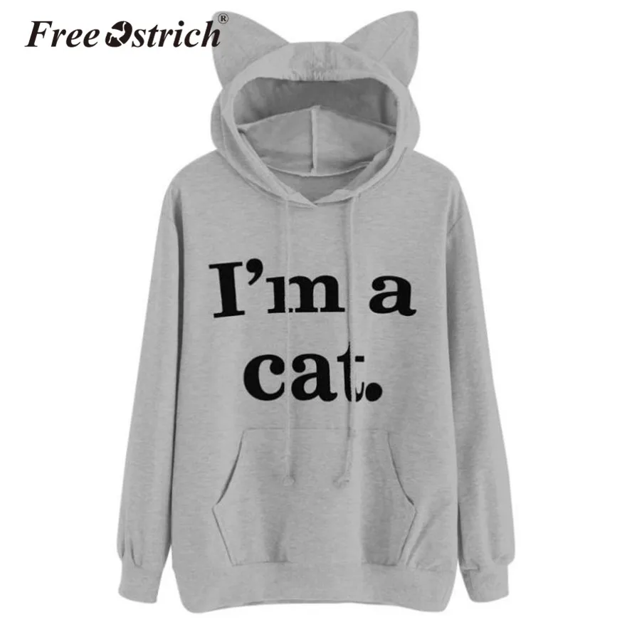 Женский джемпер с капюшоном и ушками страуса FREE, повседневный пуловер с длинными рукавами и котом, модель Oct13