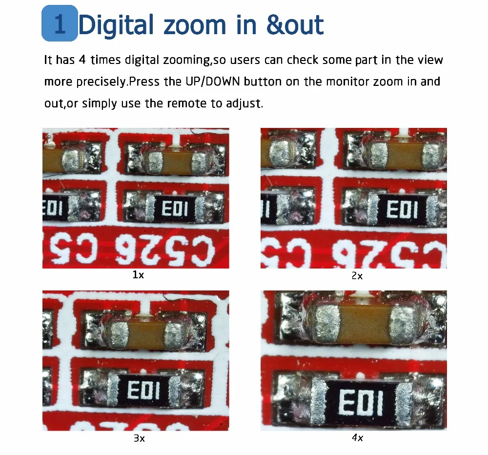 Спецификация:МикроскопДатчик изображения: HD-датчик 3 мегапикселяВидеовыход: 1080P Full HD (через HDMI) ;720P (через ПК)Формат видео: MOVКоэффициент увеличения: до 260 × (монитор HDMI 22 дюйма)Разрешение фото: 12 мФормат фото: JPEGДиапазон фокусировки: от 5 см до 15 смЧастота кадров: макс. 30 °F/с при яркости до 600 лусаИнтерфейс видеовыхода: HDMI/AVХранение: карта Micro-SD, до 32 Гб (опция)Поддержка ПК: Да, для Windows XP/7/8/10, программное обеспечение для ПК с измерением (подарок)Источник питания: 5 В/2 АРазмер подставки: 20 см * 12 см * 17 смРазмер экрана: 5 дюймовАксессуары: подставка * 1,Адаптер питания (вилка США) * 1,USB кабель * 1,Кабель HDMI * 1, руководство * 1,ИК-контроллер * 1Данные упаковки: 28*22*17 см/1,9 кгПосылка входит: Andonstar ADSM301 большое расстояние до объекта, цифровой USB-Микроскоп