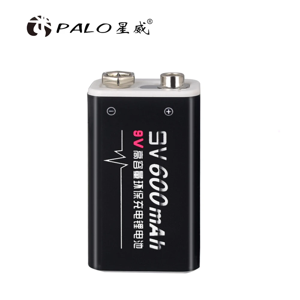 Аккумуляторы PALO 9 В, 2 шт.компл., 6f22, 6F22X, 6LR61, 9 В, литий-ионные, 600 мА ч, для радио, камеры, игрушек и т. д.