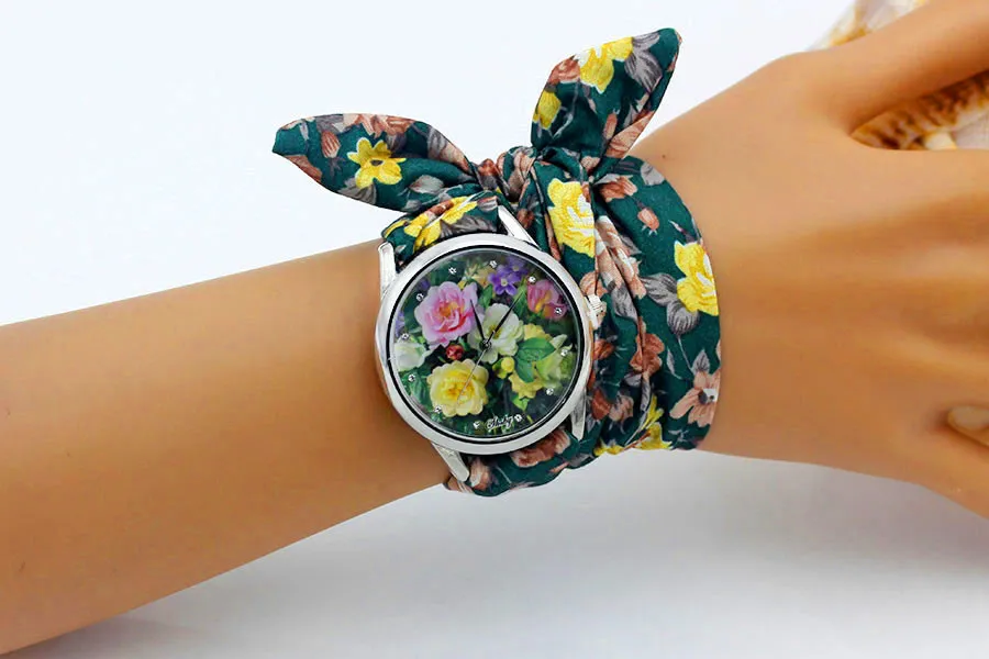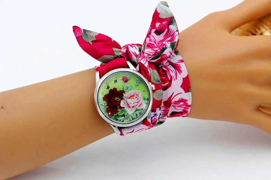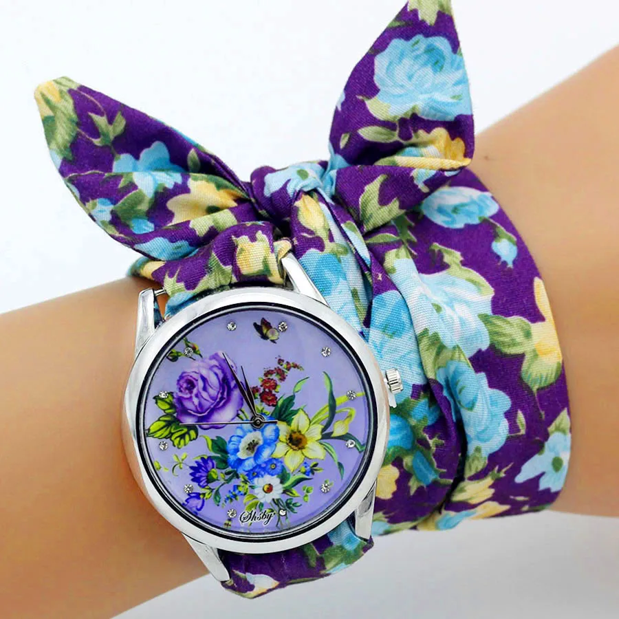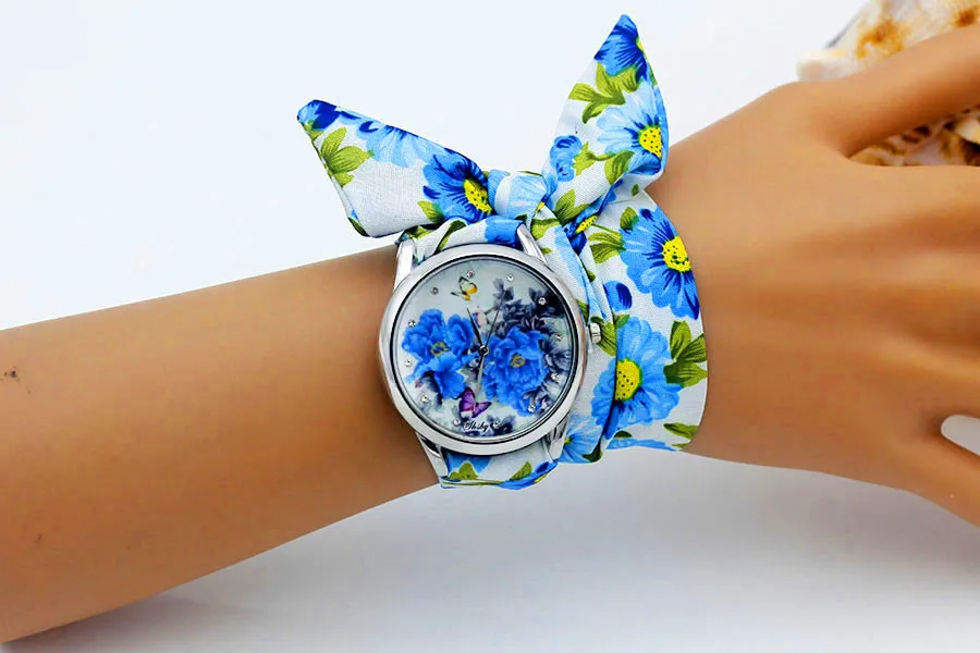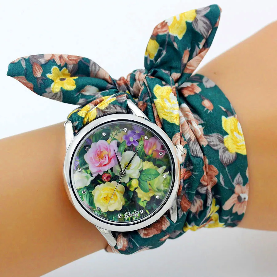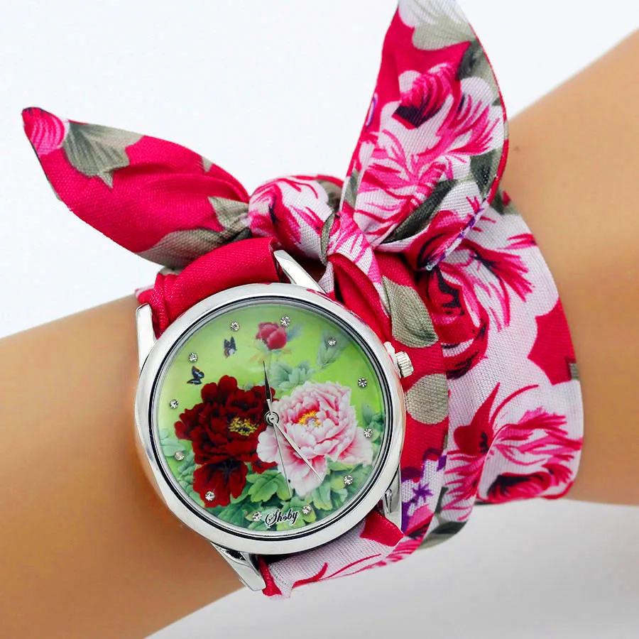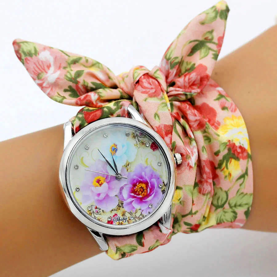 Часы наручные Shsby женские с тканевым ремешком, модные наручные часы с цветочным принтом, часы с тканевым браслетом для девушек