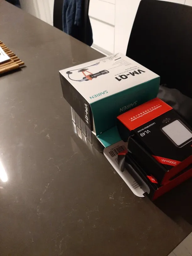 Посылка пришла быстро но есть косяк повреждена упаковка не вижу смысла винить продавца все вопросы к почте и таможне а так все работает фонарики они очень яркие что ослепило меня не на долго и микрофон классно записал звук рекомендую
