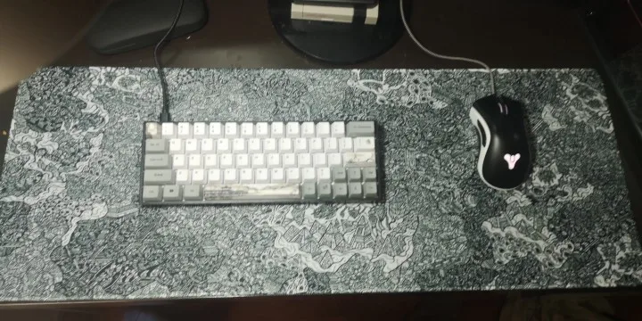 Этот коврик для мыши очень хорошего качества. Я купил один 30x60, он действительно большой, подходит для двух мониторов. Черный цвет немного стирается, он имеет несколько зеленых тонов, но за исключением того, что эта коврик для мыши отлично подходит. Это один из самых дешевых, которые Вы можете купить, и качество хорошее за его цену. Безумная ценность.