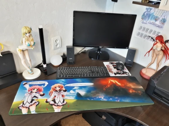 коврик хороший. качество на высоте, материал приятный на ощупь. толщина 4мм - вообще удобно, размер 900*400 - он уже огромный, хз кто берёт метр, может и в кайф... изображение пришлось обрезать, но в целом доволен, я теперь дважды на троне;) лучше брать картинки, у которых акцент по краям или на мелкие детали, а не на центре, ведь там клавиатура...