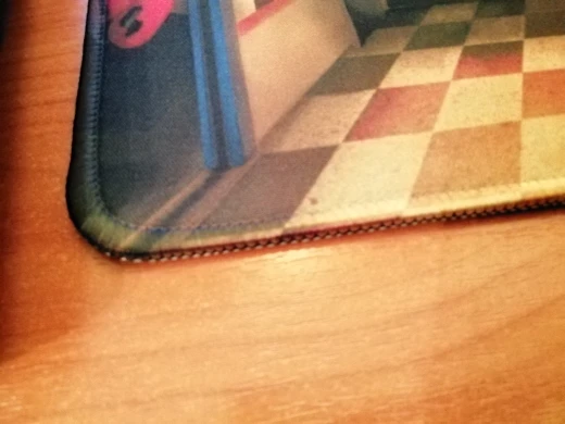Всё отлично. Края прошиты. Мышка скользит отлично. Ткань. Единственный пару минусов. Картинка чутка обрезана получилась по всем краям (не критично, но я делал черные градиенты по краям, при печати это не было учтено. Сотношение сторон я специально соблюл) И цвета насыщенней получаются чем на картинке. А в целом крутой ковер.