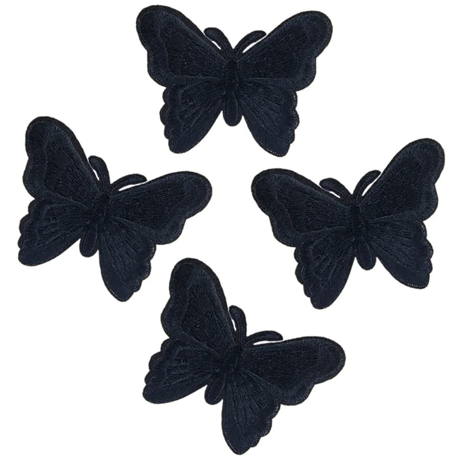 10 шт., черные нашивки-бабочки для одежды, вышитая аппликация, железные аксессуары, нашивки, наклейки на одежду, сумки, DIY