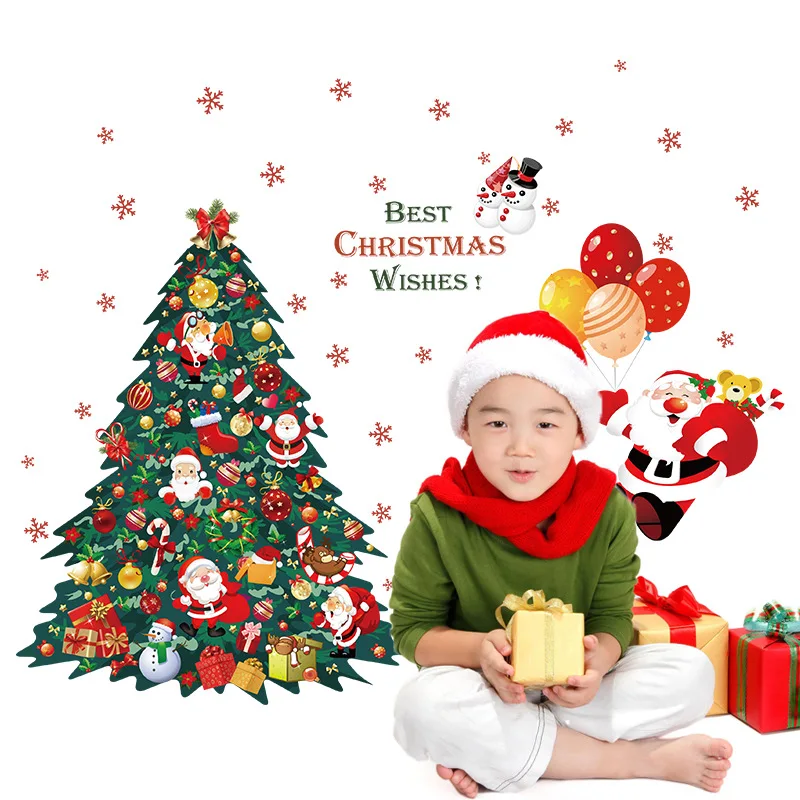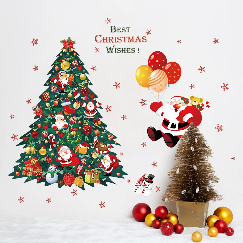Рождественские наклейки на стену, рождественская елка, домашний декор, Санта-Клаус, виниловые наклейки на стену, 3D украшения сделай сам для праздника