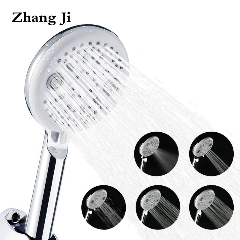 ZhangJi современный дизайн 5 режимов душевая головка для ванной Хромированная Пластина ABS ручной переключатель водосберегающая насадка для душа