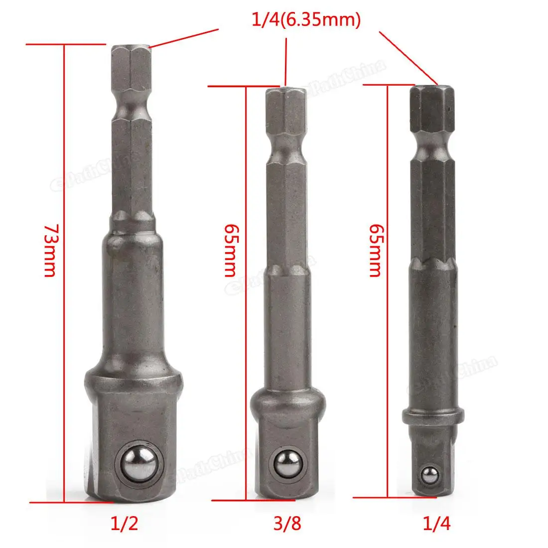 Комплект портативных переходников для гнезда, 3 шт., поворотные головки, шестиугольные металлические сверла 14 38 12