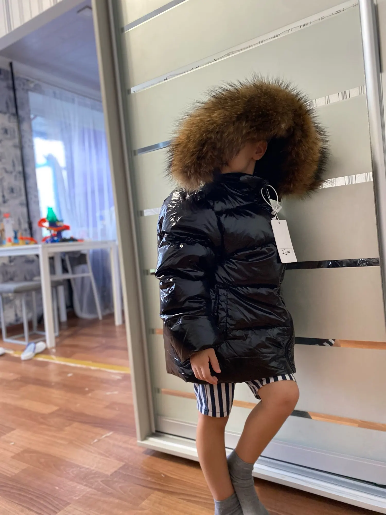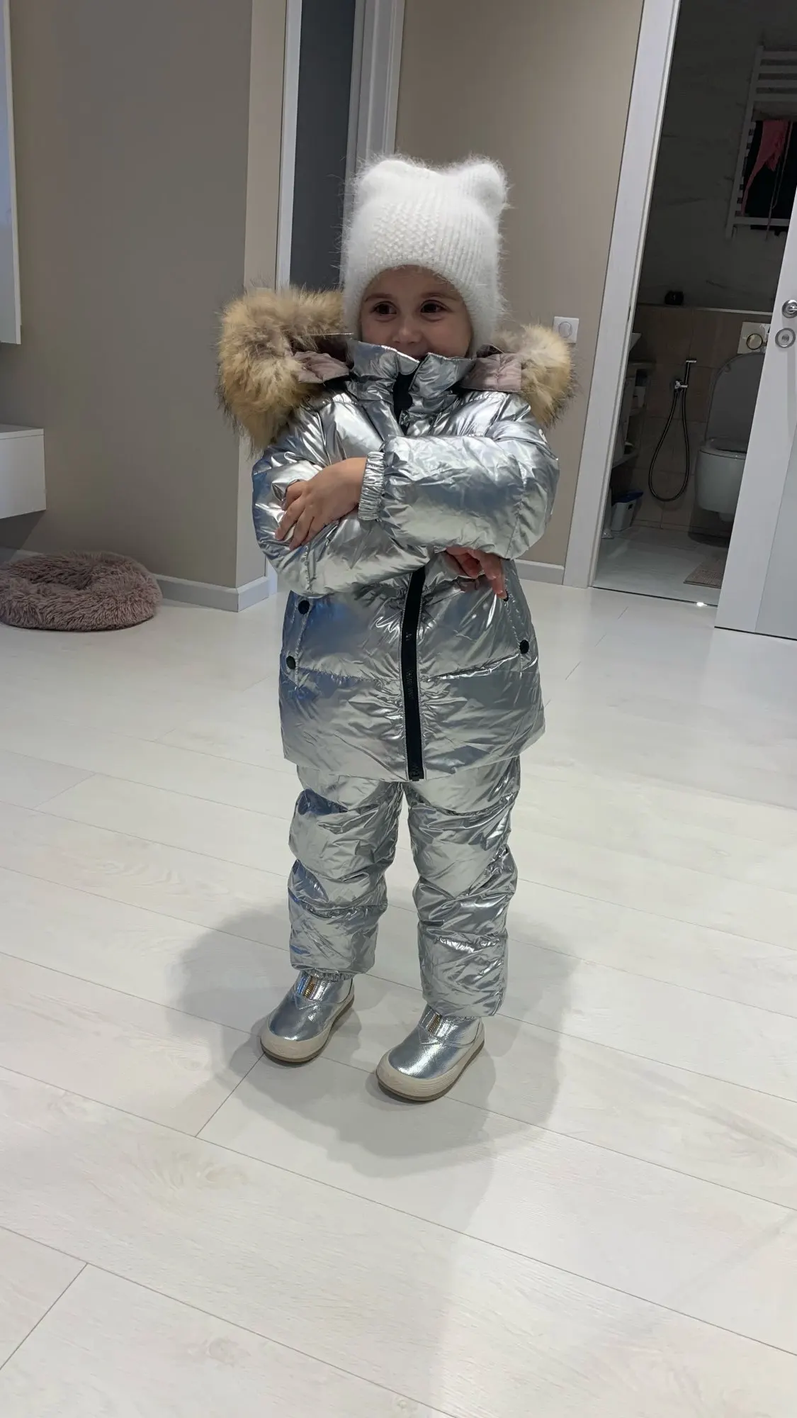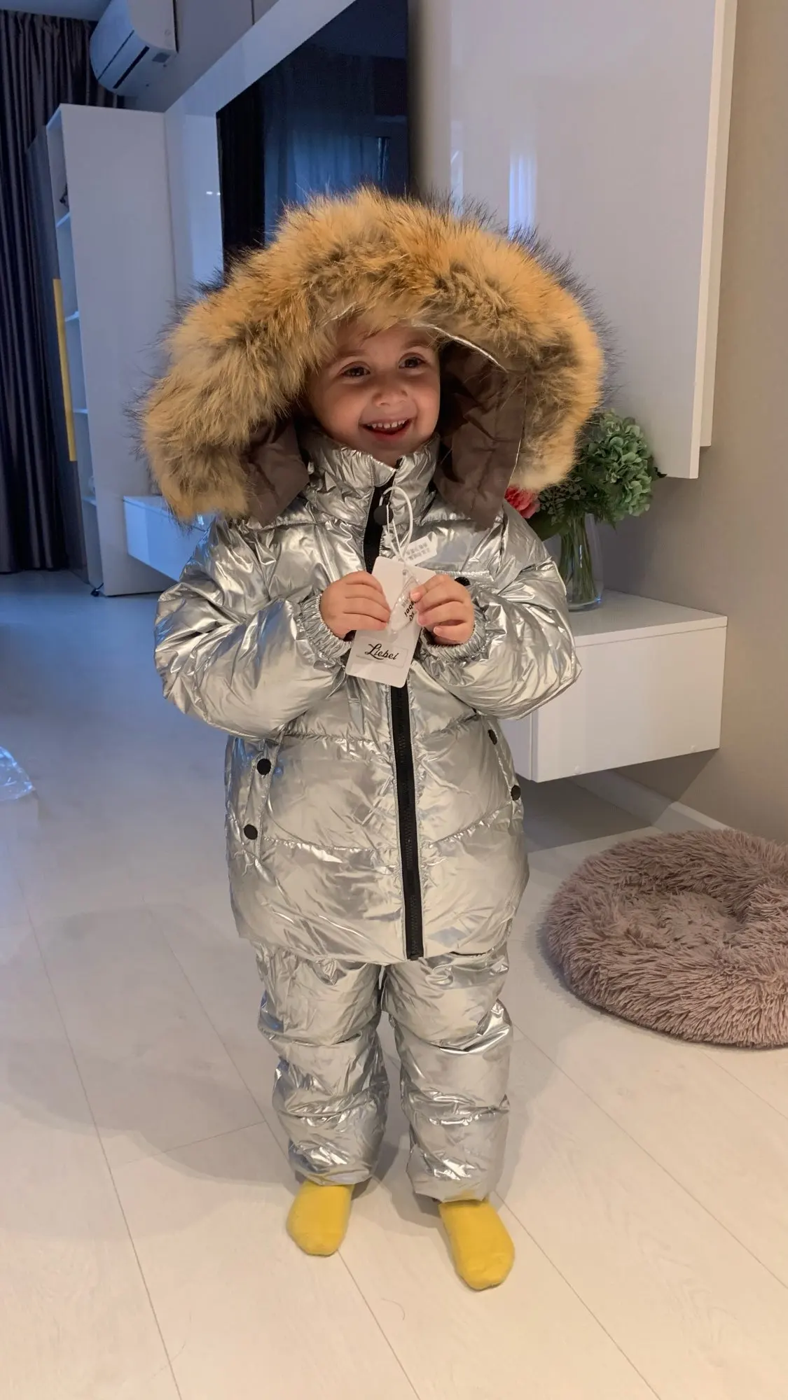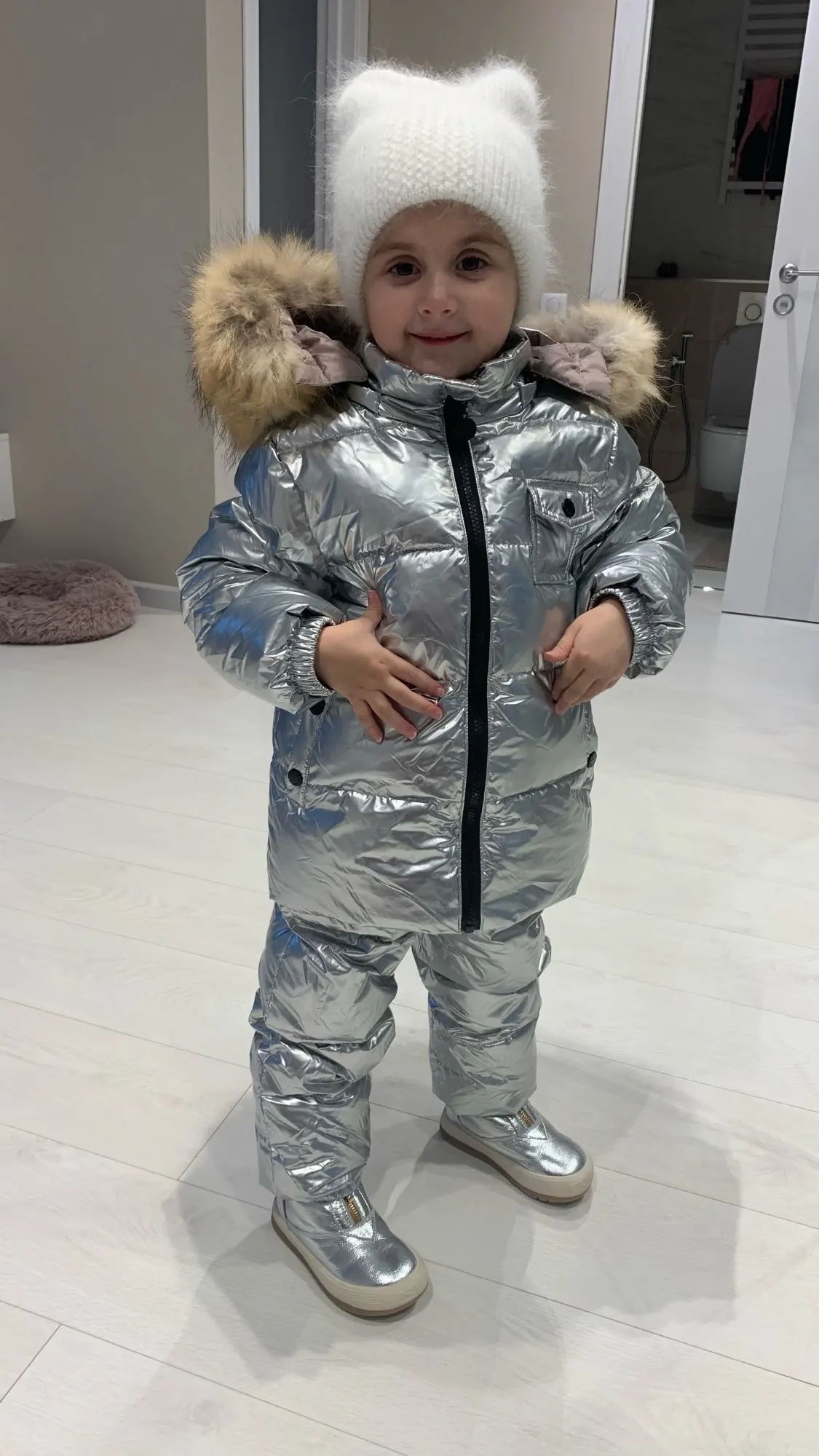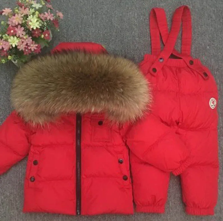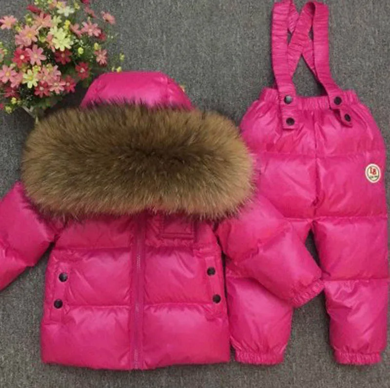 Детский утепленный пуховик с животным мехом для мальчиков и девочек, лыжный костюм, топ и брюки