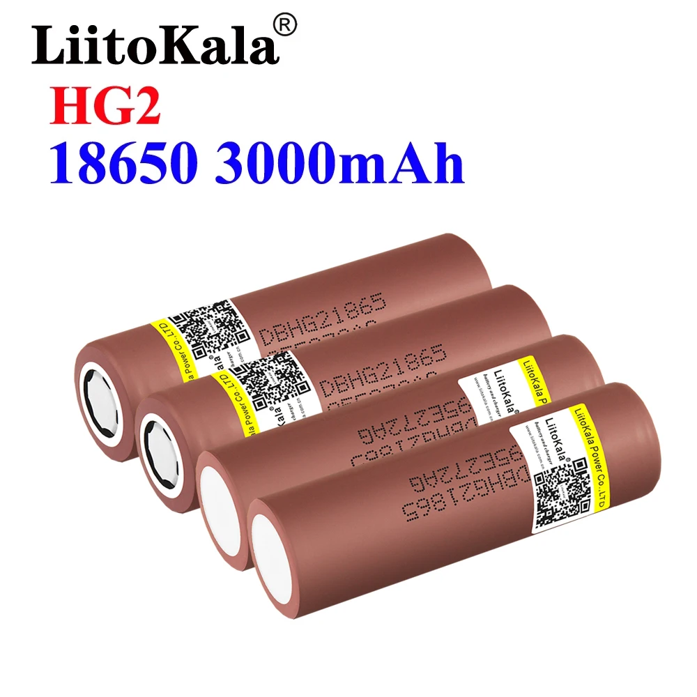 Литий-ионные аккумуляторы LiitoKala HG2 18650, 3000 мА ч, с высокой мощностью, 30 А