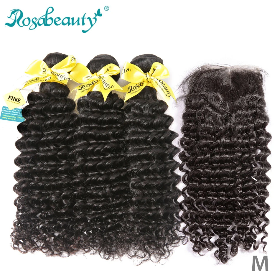 RosaBeauty 8A бразильские глубокая волна 3 пряди с закрытием фронтальные 8-30 "28 30 дюймов вьющиеся Remy человеческие волосы плетение с кружевной застежкой