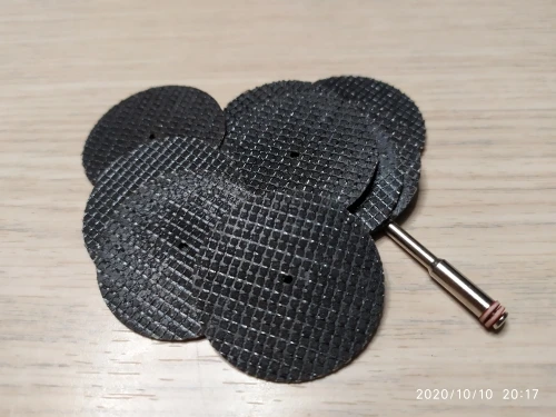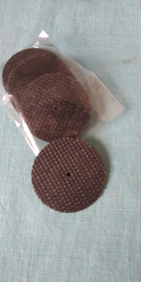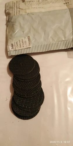 Заказал 28.09.2020 за 51,65 руб. коричневые и за 112,99 руб. чёрные, получил 13.11.2020. Доставка Cainiao Super Economy. Заказывал два вида дисков и продавец положил всё в одну посылку. Упаковано было только в простой пакет, поэтому один из коричневых дисков во время доставки был сломан. Ещё один из них оказался бракованным - кривой, слеплен из двух дисков, его толщина 1.8 mm, у остальных 1 mm. Чёрные диски все целые, толщина 1.15 mm. Диаметр всех дисков 38.5 mm. Эти диски действительно режут металл в отличие от железных с напылением.