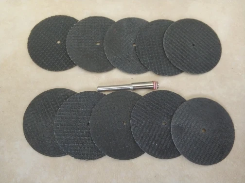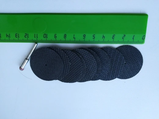 Один диск не доложили, вместо 10 оказалось 9. Описанию соответствуют: диаметр 38,5 мм, толщина 1,0 мм, диаметр оправки 3мм.