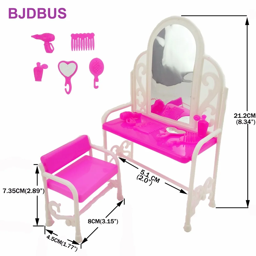 8 предметовпартия = 1 тканевый диван + 1 туалетный столик + 1 кровать + 5 вешалки, одежда для Барби, игрушки